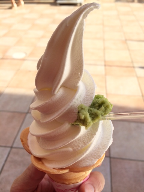 味はまぁまぁですが、大仁町で食べたわさびソフト