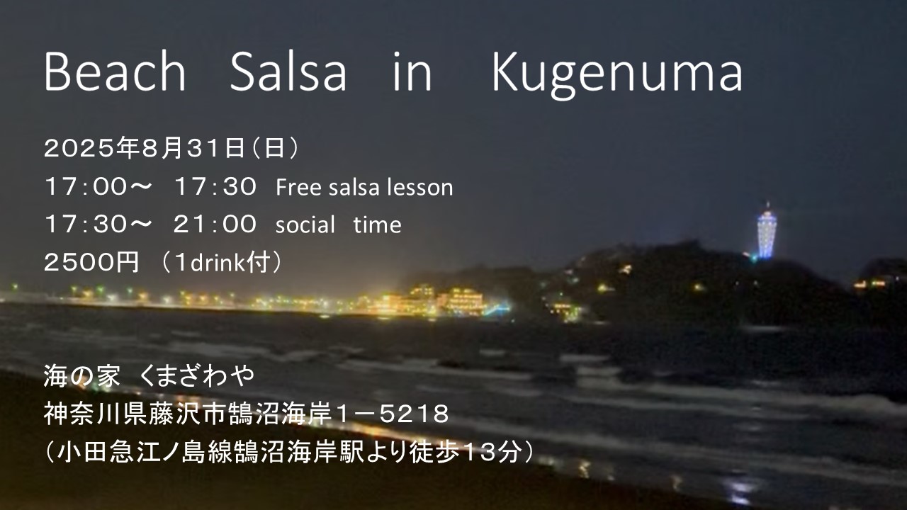 8月モヒートを終えて急遽きまった鵠沼ビーチサルサ、急なのでスケジュール合わない方もたくさんいらっしゃったなと感じながらもやるからにはやれることは最大限やってみました。生徒さんの協力もあり無事35名の方に参加頂くことができました。私はほとんどサービス残業のサラリーマンといった感じでしたが、参加した方が楽しんでもらえたのはよかったのかなと思います。スタート時人が少ないなと思ったら浜辺で遊んでいる方がが多々いらっしゃったので、それも含めてのビーチサルサなのかなと、そこだけは想定していなかったです。