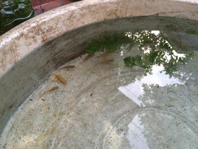 そうすることで人を見るとメダカが群れてやってくるようになる。