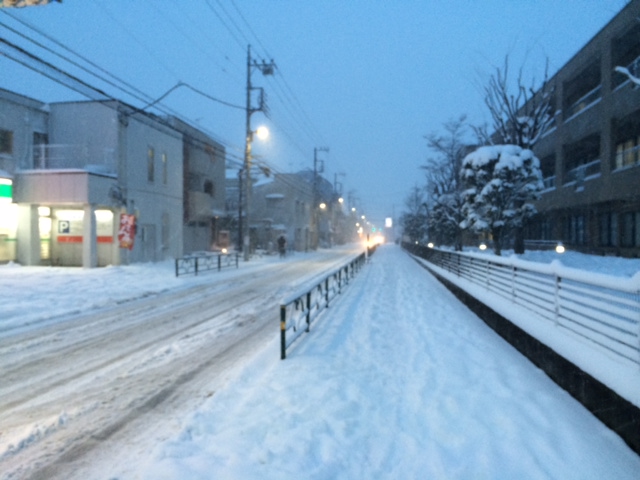近所のバス通りを見に行ってみたら結構しっかり積もってました