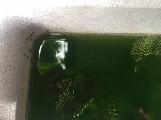 成魚が2匹入っているあやしい発砲容器の中にも