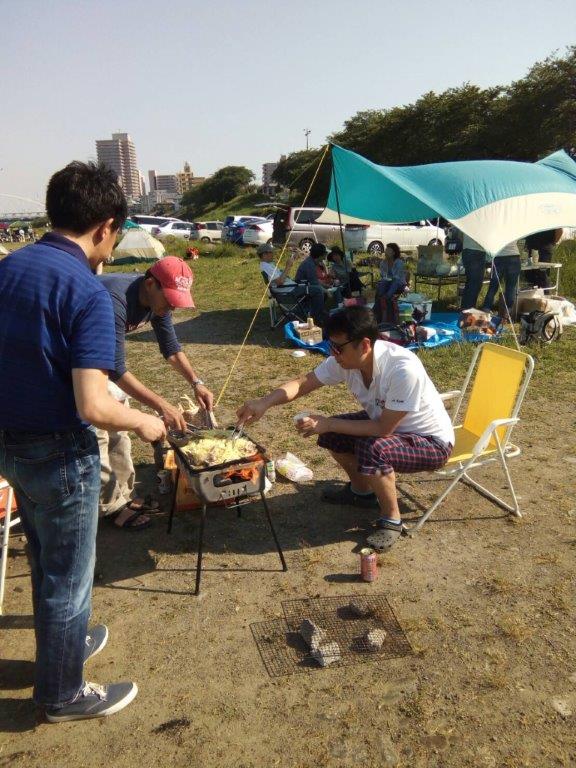 到着するとすでにタープは張って頂いてましたので私の準備を淡々とすすめました。今年もやっぱりライターを忘れてしまいました。お買い物リストに入れていたのですが駄目ですね。今年はY氏が薪をもってきてくれたので火力が2倍といった感じでした。