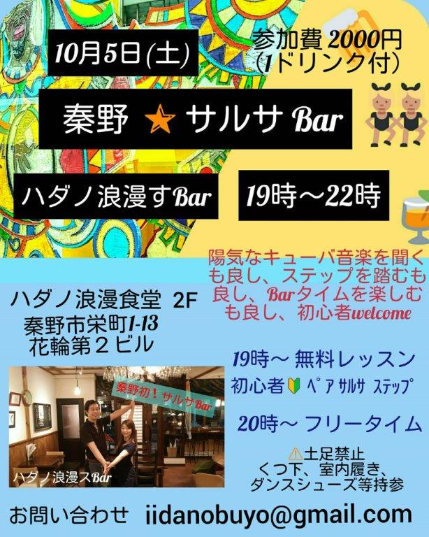 毎回月末と月初の連絡に時間がかかってしまいましてすみません。今月10月の厚木ラテン化計画は秦野サルサバーからスタートです。