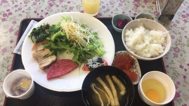 この朝食は石川県は能登、和倉温泉のビジネスホテルの朝食です。納豆はありますが生卵はありません。やっぱり野菜多め。ここは納豆が少し少なく感じました。一度加賀屋にとまってみたいものです。今は星野リゾート系かな?