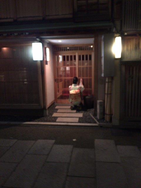 入り口の格子戸を一生懸命掃除する着物姿の女性が絵になりました。
