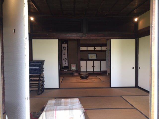 入り口の格子戸を一生懸命掃除する着物姿の女性が絵になりました。