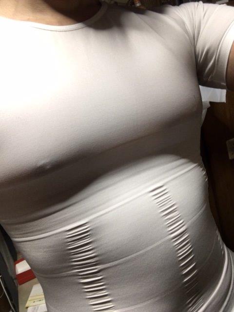 こちらになります。サイズはMを購入してみました。14時間着てみました。最初はかなりよい感じで加圧しているなと感じましたが、2時間位着ているとどうも動きにくく苦しい感じがしました。ちょうど自転車だと昔パールイズミさんが出していたコンプレッション系の締め付け感といったところでしょうか?そうなると長時間着ているのはあまりよろしくないかも?とも思ってしまいます。こちらの商品のせいかわかりませんが、微妙に心臓付近に痛みが発生しております。明日にはよくなることでしょう。